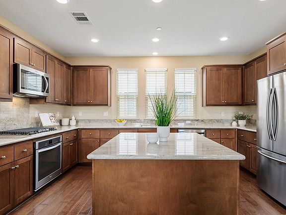 - Features: Counter - Solid Surface, Counter - Stone, Dishwasher, Eat In Kitchen, Garbage Disposal, Gas Range/Cooktop, Island, Microwave, Pantry, Refrigerator