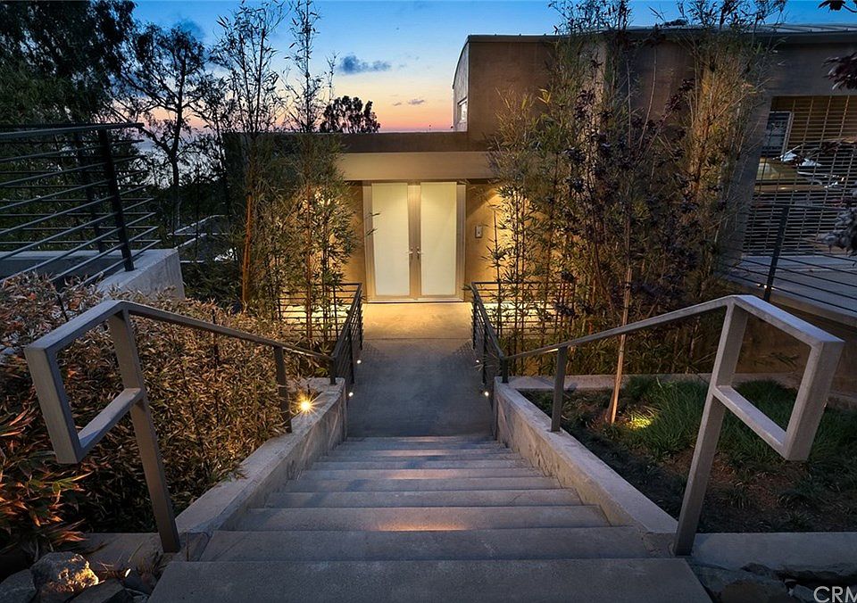 A wooded hillside with sweeping coastline views is the setting for this distinctive modern residence. Commissioned by a noted artist and her collector husband, this Tim Nicol design demonstrates wisdom and sensitivity not often found in modern homes. At every turn, carefully placed windows frame the ocean vistas while perfectly illuminating the interiors throughout the day. A restrained palette of materials and a timeless design create the perfect backdrop for a wonderful collection. The interiors unfold in a series of carefully choreographed spaces; each created with a distinct identity and purpose. A wall of glass across the entire seaward exposure of the main level opens to the main terrace. The dining and living rooms are ethereal spaces, wrapped in glass, and taking in the views. The hand-built Bulthaup kitchen is anchored by an oversized one-piece stainless island and adjoins a courtyard garden with specimen Golden bamboo. The tranquil master suite is flooded with light and includes large bath, dressing, and closet areas. Two additional guest suites are situated on another floor for privacy. A full floor artist's studio of nearly one thousand square feet features elevated north windows, 13' ceilings, and could be used as a guest suite, gym, theater, or other special-purpose room. Steps away, a detached garage building completes the property. Distinctive and unique, this home must be seen to be fully appreciated.