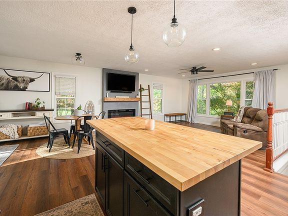 This home has some great updates and as you enter the front door you will think "I am home". The open concept features an updated kitchen w/ center island w/ wood countertop, ss appliances, granite counter tops, dining room w/ slider that leads out onto a spacious updated deck overlooking private backyard and features hot tub & cabana which makes a great area for entertaining. The living room features an attractive electric fireplace. The master bedroom has a feature wall of wainscoting, new slider that also leads out onto the private back deck. Updated bath has double sink vanity w/granite countertop, tub w/ shower. Additional 2 bedrooms with all areas featuring LVP flooring for convenience an ease. All rooms have been newly painted & updated lighting installed. The LL has a 4th bedroom & full updated bath which is a nice guest area, or a great home office. Large laundry area and attached 2 car garage completes this charming home. The additional 21 X 36 heated & insulated extra gar