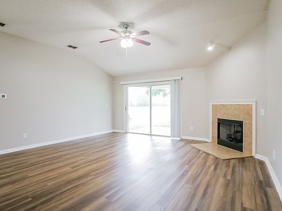 Please note, our homes are available on a first-come, first-serve basis and are not reserved until the lease is signed by all applicants and security deposits are collected. This home features Progress Smart Home - Progress Residential's smart home app, which allows you to control the home securely from any of your devices. Want to tour on your own? Click the "Self Tour" button on this home's RentProgress. Discover the many charms of this St Augustine rental home with a move-in-ready interior that holds more than 2,000 square feet of space. Step inside the three-bedroom and two-bathroom smart home to find a spacious open-plan living room featuring a lighted ceiling fan and a cozy corner fireplace with a tile surround. Sliding glass doors offer a view of the home's back patio. Spread out in the spacious kitchen as you prepare your meals using the stainless steel appliances and the long countertops. Enjoy dining at the breakfast bar or in the dining room, which offers direct access to the garage and laundry room. In the main bedroom suite, you'll have a private bathroom with two separate vanities and a walk-in closet. Sign up for a tour today!