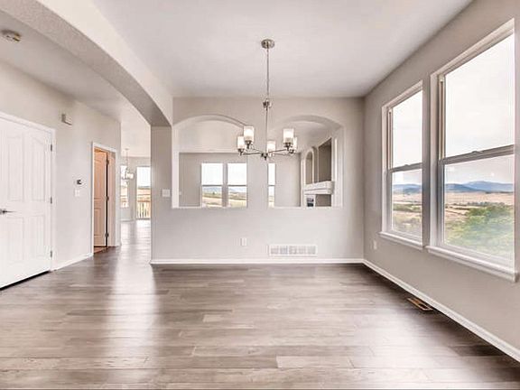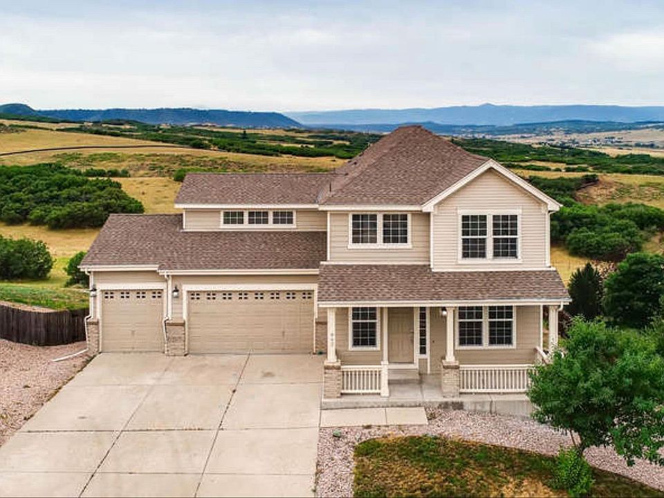 Beautiful home on a fantastic lot that backs up to tons of open space! The main level features an open floor plan with beautiful arches to separate the formal dining room. The back of the house features the best part, the UNBELIEVABLE westerly views! The kitchen showcases granite countertops and brand new stainless steel appliances, including the fridge! The additional adjacent living space features a gas fireplace for the cold winter nights. On the upper level you will find the large master suite with the 5 piece bath making this more of a retreat! The spacious bonus room on the upper level would make a fantastic man cave or media room! Easy access to the backyard through your walk out basement. Brand new deck where you can witness beautiful sunsets! Fresh interior paint throughout. 3 car attached garage for all your storage needs! No rear neighbors! Easy access to I-25 making the Denver or Colorado Springs commute a breeze!
