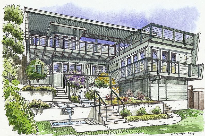 This impeccably restored 1942 Bauhaus residence was designed by J.H. Ostwald and features original architectural details throughout. Sophisticated and spacious floor plan with abundant natural light and sweeping views from all levels. Serene master bedroom suite with venetian-finished surfaces, walk-in closet and tiled bath with European fixtures. The custom landscape design in rear garden includes ponds and a waterfall! Gorgeous! Information is deemed reliable, but not guaranteed. Square...