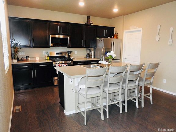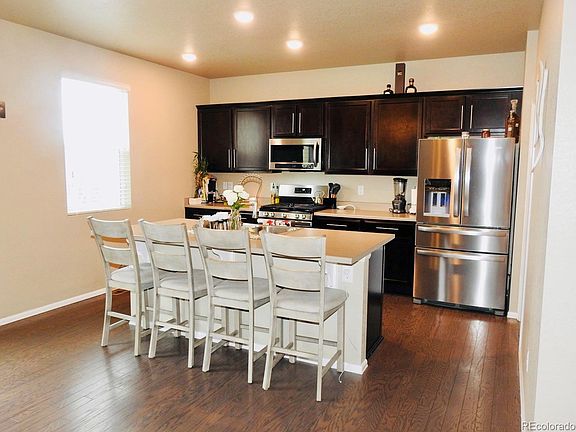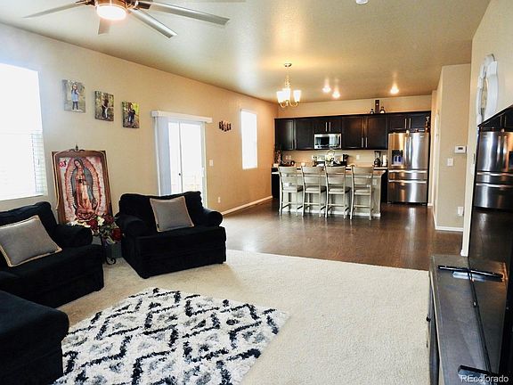 Say Hello to your beautiful new Home!!!! Welcome to this lovely Silver Peaks community. Open and Bright floor plan with central island and large pantry. Main level study with half bathroom. Upper level has a huge master bedroom and additional three bedrooms. Huge back yard and Security camaras will stay not leased. Located in Weld county with lower taxes. Close to I76 and approximately 25 min to DIA and Down Town. Great Neighborhood with schools at walking distance.