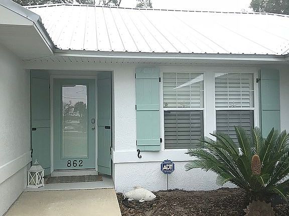 Paradise Found! in this 3/2 with metal roof in 2017, septic replaced 2018, Spacious open concept living area with Cathedral ceilings. Gorgeous grey toned wood look tile floors in all living areas, both bathrooms and master bedroom with upgraded baseboards. Plantation shutters in living area and Hurricane shutters in front. Laundry room with extra storage. Tropical landscaped low maintenance back yard with privacy fencing and shallow well.