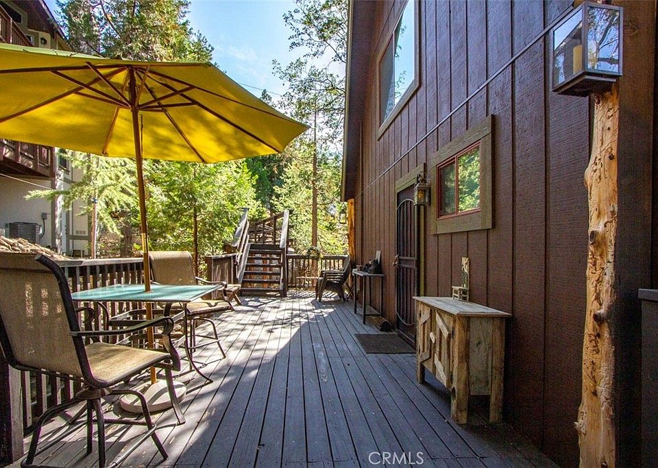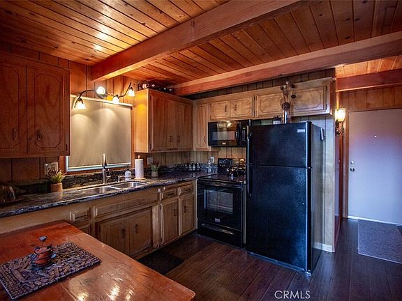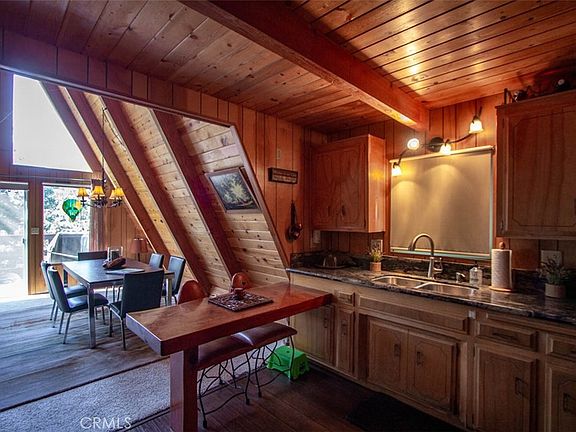 This rustic mountain A-frame on Golf Course Road is a quaint 2-bedroom, 2-bathroom house waiting for you to make memories. This quintessential mountain retreat is perfect for experiencing all four seasons. The natural wood tones pop as you enter the house providing a warmth that compliments this style of home. Tongue and groove walls and ceilings with exposed wood beams provide a cabin-like feel. The entry-level has one bedroom, one bathroom, kitchen, dining, and living room areas. The kitchen has been updated with granite countertops and a stainless-steel sink. Clear sight lines open the kitchen to the living room and dining areas making the space feel even larger. The living room features a large wood-burning fireplace making the space perfect for relaxing and enjoying a cozy fire while admiring the outdoors. Additionally, the living room has direct access to the deck through large sliding doors letting you bring the outside in whether the doors are open, or the natural light shines into the space. Above the living room and kitchen area is the master bedroom loft that overlooks the living room space and takes advantage of the large windows that allow you to wake up to the beautiful trees right outside your door. The loft has a second bathroom giving some additional privacy and convenience to the space. This home is a short drive to the Lake Arrowhead Country Club and to premier outdoor shopping at the Lake Arrowhead village, and within driving distance of many outdoor activities at one of four mountain lakes, or 3 ski resorts the San Bernardino mountains have to offer. The seller over the years has done many upgrades to this charming cabin. Come up today and take a look for yourself.