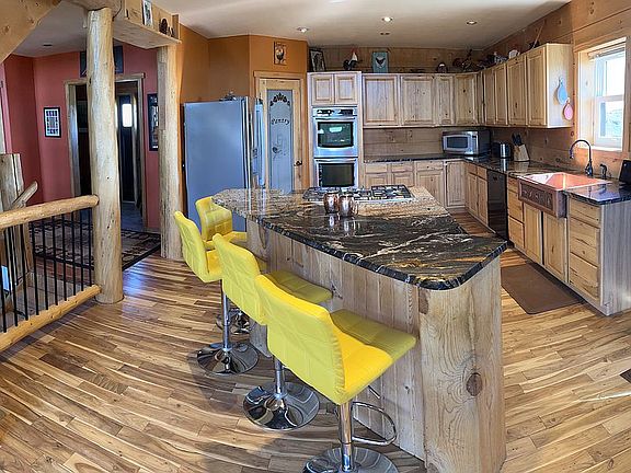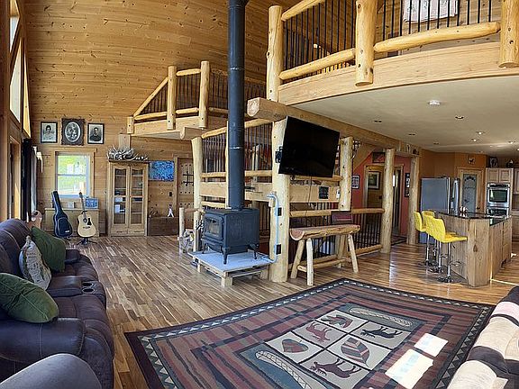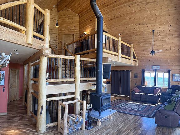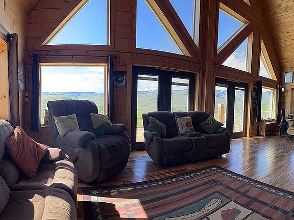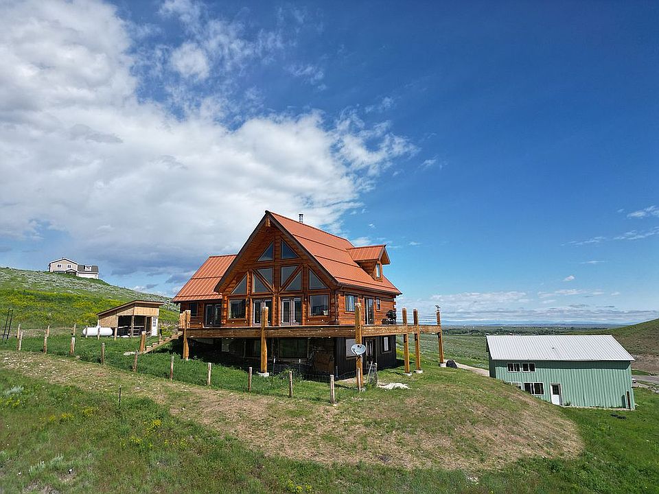 Virtual Tour can be found copying and pasting this link in your browser https://youtu.be/IUh4ln_dWHA. Breathtaking views and privacy all within minutes of town. This open concept spacious home consists of 3,600 square feet of living area overlooking the entire town of Lander, Wyoming and its lush Baldwin Creek Valley. In addition, there are 180 degree views of the majestic Wind River Mountains to the south sweeping westerly toward Red Butte. Breathtaking views are available from every room in the home. There are 4 bedrooms and 3.5 baths within the home. Two finished bedrooms and one partially finished bath are located in the walkout basement, one bedroom and bath in the upstairs loft, and the master bedroom and bath are located on the main floor with an additional ½ bath. Some of the higher end finishes include: hardwood Tobacco Road Acacia flooring installed on the main and loft floors, granite countertops in the kitchen and finished bathrooms, hickory kitchen cabinets, double oven, and knotty alder doors throughout and a 1300 square foot deck to enjoy the views. The home is constructed using engineered insulated logs which provide a R38 insulation value. The main heat source is radiant in-floor heating powered by propane throughout running both through an on demand hot water heater and traditional water heater for optimal performance. Backup/secondary heating is supplied by a large wood stove and an optional propane hookup in the master bedroom. There is also a 40 x 40 shop with lofts accounting for 2,400 square feet of space including oversized 12'X12' doors. The shop is also set up for propane heat as well as plumbed for water access. Additionally, there is also a 14X14 outbuilding currently being used as a chicken coop. This home is located in the Heritage Hills subdivision. The homeowners association maintains the black top road, weed control, plowing, and mowing. (Dues $600/Year) This is not a 100% turn key finished home. Some trim work needs to be completed on the main and loft levels. The unfinished portions of the basement are completely drywalled but the drywall needs finishing along with the flooring. Upon closing, a $20,000 cash allowance will be paid to the new owners. This allowance can be used to help offset the costs of finishing the home or other expenses.