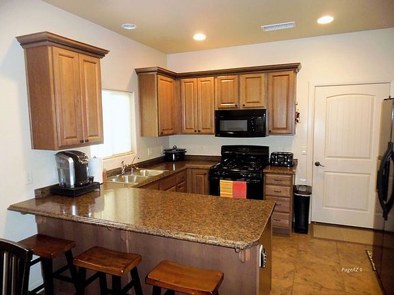Check this great little house out! Walk through the front door into a great room with 9' flat ceilings, spacious living room, dining room w/coffered ceiling, strategically designed kitchen for maximum work space and plenty of cabinets, gas stove and black appliances. Three bedrooms, two full bathrooms, walk in closets (his and her closets in master bedroom). Upgraded wood laminate flooring in living room, dining room.....tile floors in kitchen and bathrooms, carpet in the bedrooms. Large covered patio in back and block wall around the home. Fully landscaped front yard, RV parking plus a 2 car garage. This home has it all so call me for an appointment.