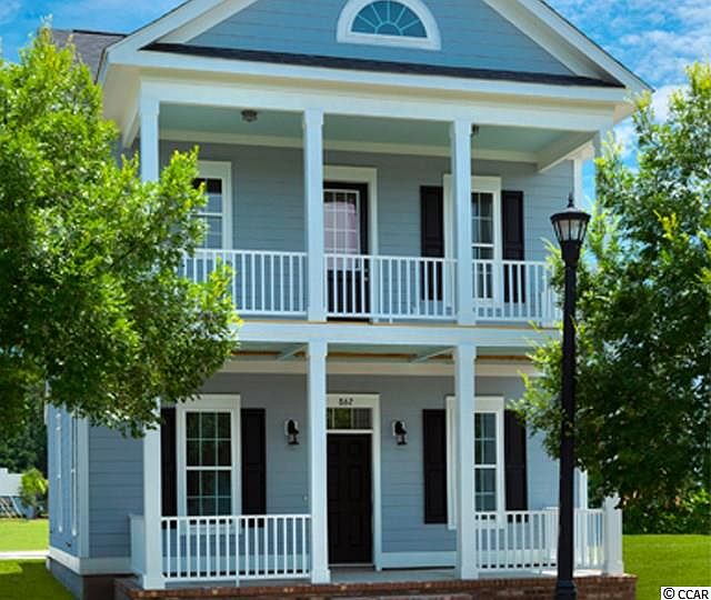 The Watercolor is a picture-perfect palette of what a home in Myrtle Beach could ultimately be for you. And, regardless, the result will be a colorful dream. Our custom design center will help you decide on interior decisions like designer cabinets, upscale trim, hardwood flooring and tile, countertops, and slate appliances to reflect your personal style. The Watercolor design of three bedrooms, 2.5 baths, loft, and two-car garage also features two floors of porches to catch that Atlantic breeze, as well as lush landscaping to the front and back, and neighborhood perks in the The Market Common community that’s just off oceanfront and home to the best shopping, dining and entertainment at the beach. This home is now complete and ready to move-in!
