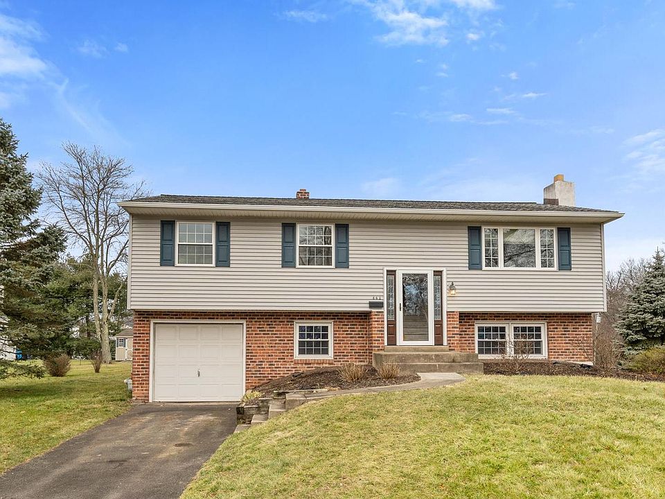 Welcome to 862 Knapp Rd in the award-winning North Penn School District. This 3-4 bedroom bi-level is waiting for your personal touches. As you enter the home, take note of the impressive front door. A few steps away, you will enter and fall in love with the sundrenched space and flow of the upper level with the combination dining/living room area, perfect for entertaining or gatherings. The kitchen is equipped with desirable gas cooking and solid wood cabinetry. The upper level owns three nicely sized bedrooms with ample closet space. The primary bedroom also has the added convenience of an attached powder room. As you reach the lower level, you will see endless possibilities. Relax in front of the wood fireplace on those cold winter nights in the generously sized family room with a newer sliding glass door that exits to a perfectly sized and graded backyard. As you make your way to the other side of the lower level, you will find the added benefit of a 4th bedroom, den, office, or exercise room. In addition to the two rooms, there is also a second powder room with an alcove that can be extended to a full bath. Lastly, you will make your way into the laundry/utility/mud room with garage access and a separate doorway that leads to the backyard. Original hardwood floors are under the carpet. Feel a sense of security that this home has had all major costly items replaced or meticulously maintained. Front/storm door replaced 2017, roof and gutters replaced 2011, siding and windows replaced 2016, heater serviced 11/2022, AC serviced 5/22, sewer trap replaced and lateral relined 11/20. Take advantage of the low taxes and its convenient location to all major routes, shopping, and dining. Please note that the address is Knapp Rd and the driveway is on Lexington. Showings begin Friday morning. Open House Sat. 1/28 11am-1pm