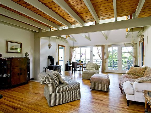 Idyllic Retreat. Country Contemporary on three acres. 2600 square feet. Gourmet kitchen with granite countertops and Wolf stove. Master suite on main level. Wall of glass. Gunite pool.