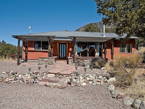 Pride in ownership, and attention to detail greet you from the moment you step onto the property, and enter the zen entrance. Flagstone, stone walls, and covered walkway line the entrance. Lovely Japanese style front door leads you into the tranquil living area, with stained concrete floors, oversized passive solar windows, custom trim, high end wood doors, and custom plaster interior walls. In floor hydronic heat along with the passive solar windows, and Jotul wood stove ensures low utility bills. Living room features recessed bookcase, and arched entrance to the new addition of a custom kitchen in 2017.White high gloss cabinets bring in the natural light from the massive windows and marble window sills conveying a feel of spaciousness. All top of the line appliances including Thor LP range, stainless refrigerator, dishwasher, and disposal, for a full service kitchen to please any chef. Eucalyptus flooring in the kitchen, and cozy dining area, make you want to stay a while, have a cup of tea, and just soak in the million dollar views. Spacious main bedroom with windows looking out on the valley below, and ancient Pinon pines. The guest room has sliding doors opening onto the terrace. The full bathroom has also been upgraded with custom tile work. The laundry room has stackable washer/dryer and the combo electric H2O heater is located here along with extra storage. The builder Paul Kopanna is known for his energy efficient homes, and this home exemplifies that concept, with its low maintenance stucco exterior, long lasting metal roof, and straw bale insulation with an R33 to R35 value. To the west of the home, and overlooking the beautiful San Luis Valley, is a raised observation deck that has views to take your breath away. All this in a prime location high up in the Baca Grande, near Crestone Creek and hiking trails.