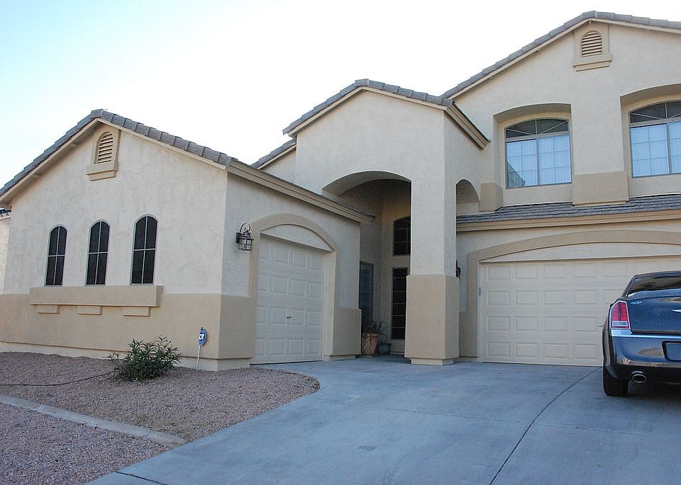 Fantastic two story home in Buckeye! Instantly fall in love with the vaulted ceilings, warm neutral color palette, carpet & tile flooring, picture windows, and the large entertainment niche with ample shelving. A bedroom & full bath downstairs. Beautiful open kitchen boasts black appliances, granite countertops, pine cabinets, center island, pantry & a breakfast bar. Grand staircase with handsome wood railing leads to the spacious bedrooms.