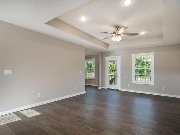 A brand new, never seen before Trickel floor plan that you are sure to LOVE! Located at the end of a dead-end street with no neighbors behind and room for everyone! On the main level you will find a spilt bedroom floor plan with the primary bedroom by itself and complete with ensuite and a huge walk-in closet! Granite countertops throughout and the kitchen has a gas range, under cabinet lighting and a pantry! Oversized rear deck with composite decking - great for entertaining. Downstairs is the real star of the show though! Not only does it have easy access to the HUGE backyard, but it shows off with a large bedroom, full bathroom and huge storage area. Plus it has TWO living areas! The main one is for getting cozy in front of the fireplace and the other would make an incredible theater room, home office, playroom, craft room or even a 5th non conforming bedroom! All this this in a fan- favorite, Nixa neighborhood that has a pool and community play area!