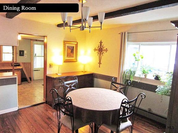 Spacious 4 bedroom, 2 bath home in Conemaugh Township. 1st features Living Room & separate Dining Room with hardwood floors. Kitchen is open to Dining Room - appliances included! Enjoy the convenience of the first floor office/den, bedroom, laundry room & full bathroom. The full bathroom was remodeled in 2016 and features a beautiful vanity and new floor & shower surround. 2nd floor features 3 bedrooms, full bath and Kitchenette & could be used as a separate apartment. Newer siding & windows. Covered front & back porches. Carport.