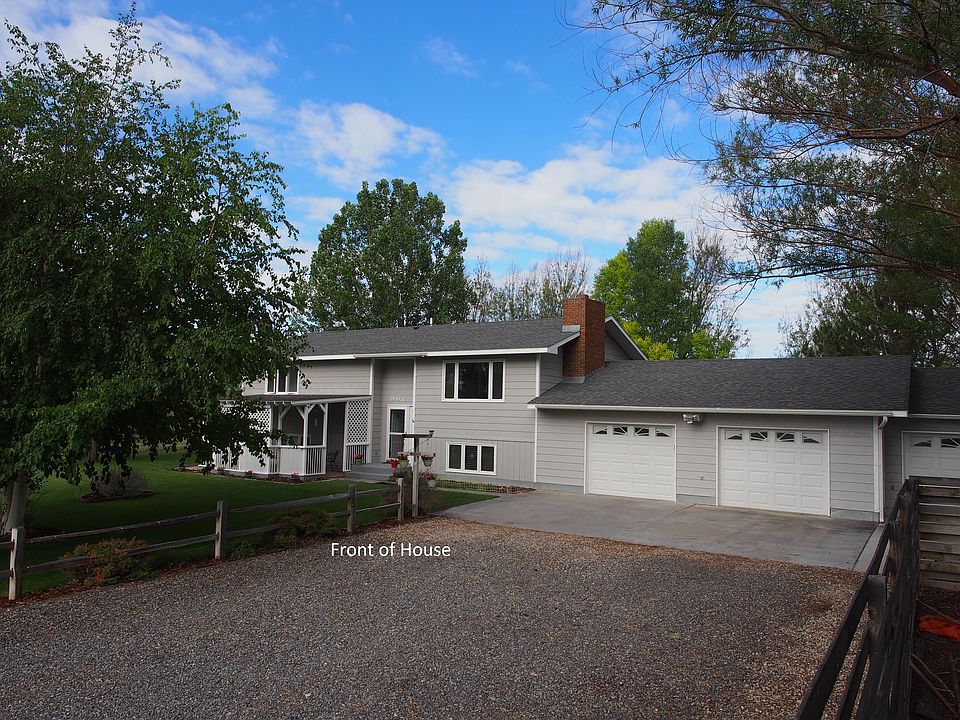 Are you looking for a spectacularly updated bi-level country estate located in one of the most desirable subdivisions in Powell? Then this is your dream home! Just a quick three miles from the city, the house is situated on over one acre of beautifully landscaped property, bordered by mature trees and shrubs for privacy. Additional details: This 2,552 sq. ft. home was built in 1984 and beautifully updated in 2014. The house has 4 spacious bedrooms, 3 redesigned bathrooms, a newly remodeled kitchen, a large family room, a natural rock wood-burning fireplace in the living room, and a 3-stall, oversized, attached garage. The interior of the home is cooled with 5 ceiling fans, 3 wall-mounted air conditioners, and a whole house fan. Floor coverings include Pergo laminate, carpet, and tile. Main level master bedroom has deep walk-in closet. Master bathroom is redesigned with tile floor, wood framed mirror, custom countertop, tiled shower, frameless glass shower door and high-end Kohler fixtures. Second bathroom main level has wood framed mirror, tile floor, custom countertop, tub, high-end Kohler fixtures. Second bedroom on the main level has a large closet. Restyled kitchen has a pantry, custom quartz countertops, deep stainless steel twin under mount sinks, tiled backsplash, and LED under-cabinet lighting. Appliances included in the sale of the home: glass cook top stove, built-in dishwasher, above- stove microwave, and refrigerator. Additional large stainless steel refrigerator is not part of this set, but purchase is negotiable. Dining room is spacious enough to accommodate a table with 2 extra leaves. Living room gets lots of natural light from a large picture window. The spacious family room on the lower level of the home features a brick built-in big enough for a wide-screen TV. Two additional bedrooms with a shared bathroom are also on the lower level. One of the bedrooms has 2 large closets. The spa-like bathroom has a huge walk-in shower with a heavy glass sliding door. Tile flooring, a wood framed mirror, high-end Kohler fixtures, and a custom countertop add the finishing touches to this gorgeous bathroom. The laundry room has plenty of space for a washer and dryer plus any additional items you might add such as hampers or a small table for folding laundry. All of the rooms in the home have new 2-inch wide, heavy duty, custom built blinds with the exception of the master bedroom and living room. These 2 rooms have custom built honeycombed, light-diffusing shades. All of the window coverings in the house are included with the purchase of the home. A walk-out deck accessible by a sliding door off of the dining area is covered by a pergola and is framed with lattice detail. The deck is large enough to accommodate a gas grill and a full-sized wooden picnic table. The table is included in the purchase of the home. The lighted, covered front patio has a shingled roof, bench seating plus ample space for your own outdoor furnishings. A storage shed in the backyard is sided to match the exterior of the house. The yard is landscaped with a variety of mature trees, shrubs, and bushes which are both decorative and which provide a nicely private setting for the house. A Rainbird sprinkler system connected to a deep well waters the yard, and the house is on the Northwest Rural Water System. There are mature fruit trees plus a large space for you to put in your own garden. The over-sized 3-stall garage has a large, lighted workbench and LOTS of custom shelves and cabinets. Look no further for the perfect home. It is right here!