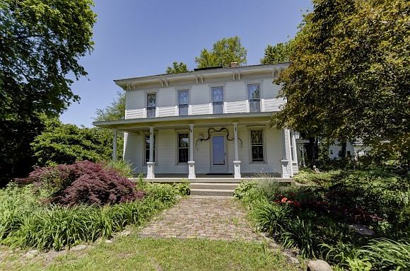 Picturesque property located on a well manicured 10 acres, with multiple areas to entertain indoors and out. Large trees and flowers are perfectly placed to create a park like feel. The owners have taken great care in the maintenance and updating this wonderful piece of history. Updates include vinyl siding, roof in 2016, new carpet in 2016, remodeled kitchen with custom cabinets and very sharp granite, remodeled bath, and replacement windows. The home has dual heating and air zones. The property contains multiple buildings which include a very nice 3 car detached garage with a finished loft for extra storage, 40 X 60 pole barn, 30 X 33 chicken coop, and a 500 bushel grain bin. All outdoor buildings have 220 ran underground for power. There is 4 wells on the property. This is a must see!!!