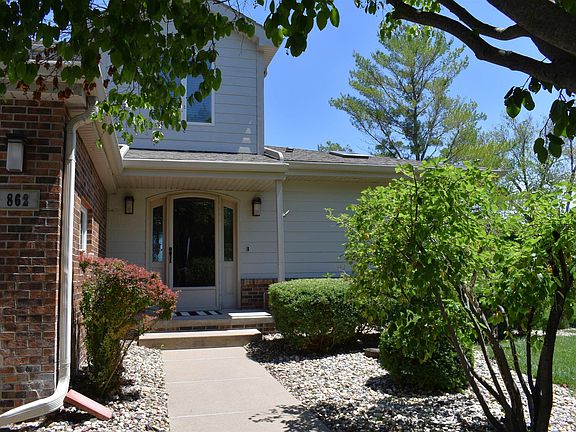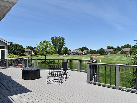 Lots of updates have been done to this 1.5 story townhome with 3 bedrooms, 3.5 bathrooms, a 2 car garage plus a 13 x 20 golf cart garage at the lower level. Very large Trex deck across the back of the home to enjoy the view of hole 1 of Dakota Dunes Golf Course. Below that is a covered patio with access to the golf cart garage. Nicely landscaped yard brings you to the front porch. The entry foyer (7 x 7) has double closet and chandelier. First things you will notice is the maple floors on main floor living areas and all the light that comes in the many skylights. A half bathroom with pedestal sink is conveniently located by front door. Open living areas with a dining room with mirrored wall which is open to the living room with vaulted ceiling, door to deck, and a 3 sided gas fireplace. Other side of fireplace is viewed from the casual dining area which has door to deck. The kitchen is a showstopper with its variety of maple and black cabinets, striking granite counters, stainless steel appliances which are included (frig, double ovens, DW, and a gas stove). As you come in from the garage there is a convenient drop zone (4 x 6) with closet. Master bedroom is located on main floor as well as a laundry area near the master closet and master bathroom which has a steam shower with 4 heads, 2 closets, dbl vanity and toilet room. Upstairs features a loft area (14 x 11 + 10 x 8) with a window seat, closet and ceiling fan. Bedroom #2 up here has a window seat and cedar closet. 3/4 bathroom for the upstairs. Walkout lower level features a family room with door to patio, a wet bar, bedroom #3 with door to patio, a full bathroom, 2 dens and access to the golf cart garage which could be a workshop, too. Besides all the closets there is a storage room too. New shingles 2018. New interior paint 2018. HOA: Lawn care, snow removal, sprinkler system, trash removal.