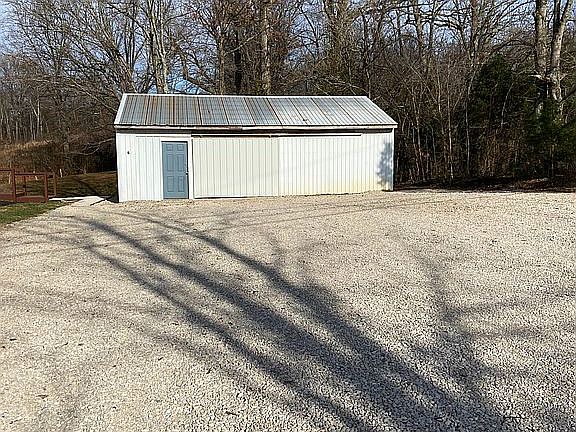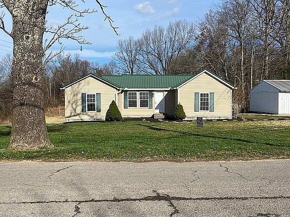 Call Candace at 270-734-0435 to set up a viewing. This home sits on a 1 acre lot in a beautiful country setting. Located in the center of Stephensburg within a mile of Lakewood Elementary School, West Hardin Middle School, and Lakers Drive-in. Only 15 minutes from Elizabethtown. This home features 3 bedrooms and 1 bath. Open to the living room is an eat in kitchen with stove and refrigerator included. The kitchen also has an open pantry. The bathroom has been recently updated with new flooring and a new vanity. The laundry closet with washer dryer hook ups is located in the kitchen area. This home is heated by propane gas and has central air. Freshly painted with new carpet throughout. Outside features a large deck freshly stained overlooking the yard, woods, and wildlife. There is a 32x24 ft detached pole barn style garage with gravel flooring and a sliding door large enough to fit one vehicle. This is an older home and was added onto overtime. Off of the living room you step down into two of the bedrooms. This home is sold as is. Conventional loans or cash only. For sale only. Listed at $89,900.