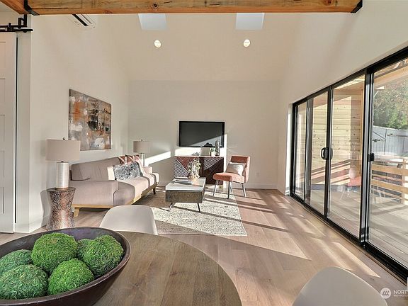 Looking for a modern, light filled 1-story home w/2 beds, a full bath, efficient & surprisingly spacious living? well here it is. This home was designed & established to fulfill everyday needs comfortably, conveniently & affordably. 9ft walls, vaulted ceilings w/skylights bathe the connected living space in natural light. Double slider dovetails the interior space w/a 168 sqft - south facing - covered deck. Power & gas ready for BBQ, heaters & additional lighting. Generous beds are 12x11ft, opulent full bath, stack laundry, smart storage. 460 sqft attic add living space & storage. Fully fenced, Heat pump & ductless mini splits provide effortless all seasons comfort. Pre-wired for EV charging - this home is ready for your today & tomorrow.