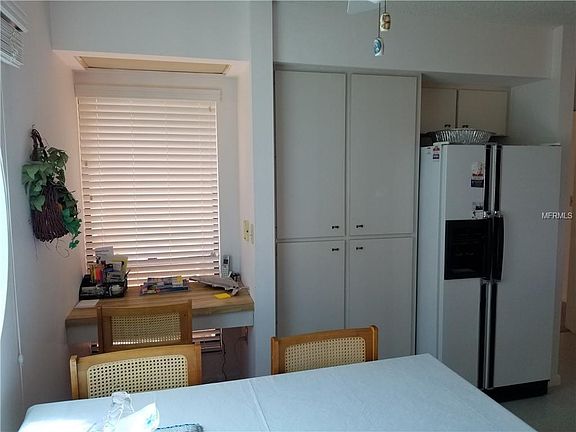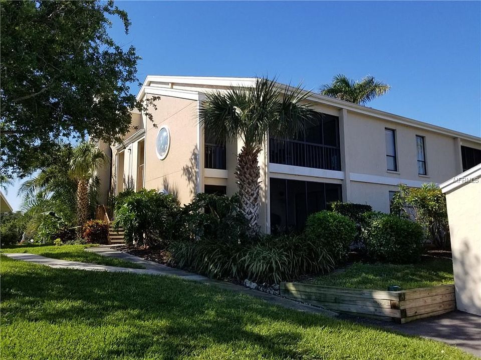 A place for your boat comes with this spacious second floor residence. Living/dining combination, eat-in kitchen has built-in desk and lots of cabinets. Master bedroom/bath area has walk-in closet and access to back screened patio. Guest bedroom has smaller walk-in closet and access to front screened patio. Wood-burning fire place in living room. View of small pond and wildlife sanctuary on Tidy Island. Park your boat at the deeded dock, which leads out to the Sarasota Bay. Residence can be leased furnished or unfurnished. Owner prefers no pets.