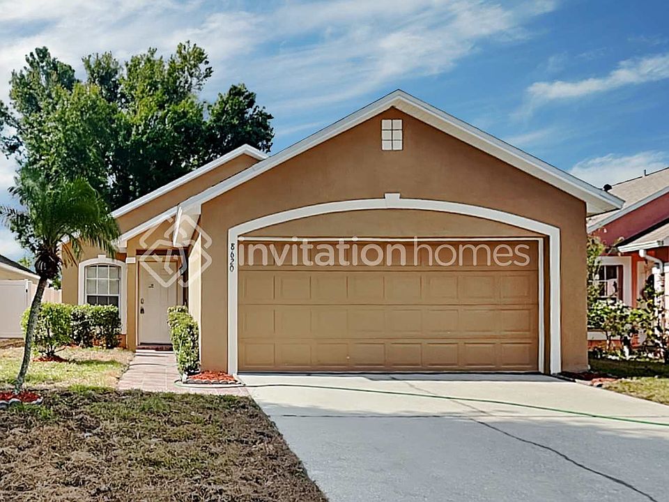 Home Features and Amenities: Air Conditioning, Fenced Yard, Garage, Granite Countertops, Long Lease Terms, Luxury Vinyl Plank, Patio, Pet Friendly, Primary Bedroom on Main, Single Story House, Smart Home, Stainless Steel Appliances, W/D Hookups, and professionally managed by Invitation Homes.