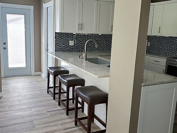 Back on the market!!! Buyers financing fell through. Absolute doll house. Completely remodeled with all new everything. Double impact Low E windows, Fiberglass double pane leaded glass doors with blinds, interior and exterior paint, LED lighting, electric panel, centricon termite system, nickel plated fixtures, Moen faucets, interior doors and hardware, under cabinet lighting, crown molding around the doorways and kitchen, wall mounted televisions, premium Spanish porcelain wood grain plank tile flooring, new carpet, baseboards, plugs, plates and switches, new shaker kitchen cabinetry with soft close drawers, lifetime warranty Cambria quartz countertops, listello backsplash, custom distressed wood kitchen island with quartz countertop, bath vanities with Moen fixtures and marble tops, toilets, handicap accessible shower stall, custom treehouse with wood railing and slide, wood privacy fencing, mirrored closet doors, water heater, extended covered entry porch, open patio at side. 25 year dimensional timberline shingle roof installed in 2006 with new flat deck roof coated in 2020. HVAC replaced in 2010 and serviced in 2020. Items in the backyard will convey with the home.