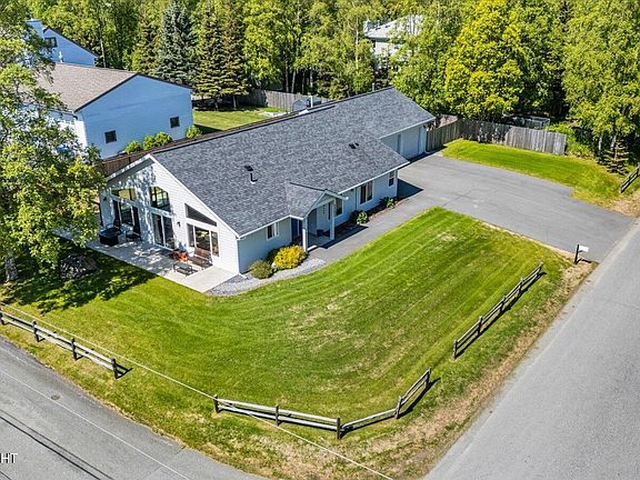 Custom-built with enjoyment and accessibility in mind, this 2019 ranch with an impressive 3 car garage is a must-see! The home has no steps, 3-foot-wide doors, large concrete patio, and a wheelchair accessible shower! Vaulted ceilings and a wall of windows capture the natural light and southern exposure in the open-concept kitchen, living and dining areas. Granite counters throughout, including adelightful island. Ample space for coats, footwear and more in the multi-purpose entryway just inside the garage. On-demand hot water and a 5 star energy rating! Fenced yard and perennial garden beds. Situated on a corner lot in a quiet Sand Lake neighborhood with no HOA, close to the airport, groceries, and recreation. Jade Park and Jewel Lake are just down the street. Kincaid Park is 5 minutes away!