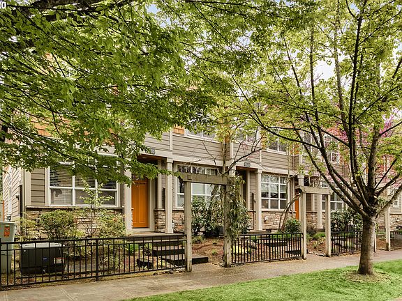 Low maintenance townhouse with fenced back yard / patio, adorable entry & front yard, detached garage plus easy street parking. Both upstairs bedrooms with en suite bathrooms & vaulted ceilings. Light bright living space with tall glass door to patio. End unit with only one common wall. Well maintained townhouse community. just 2 blocks from Spingwater trail & 6 blocks from New Seasons Market. Near Sellwood Park with off leash area & great river access! Recent paint inside/out & all new carpet. [Home Energy Score = 7. HES Report at https://rpt.greenbuildingregistry.com/hes/OR10183174]