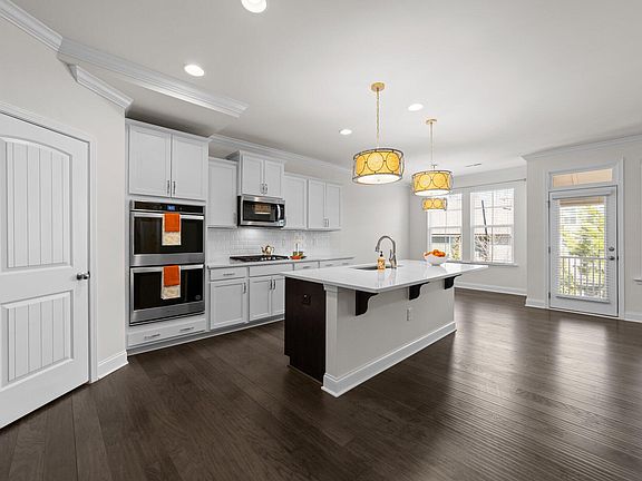 Stunning 4 bedroom/5 full bath must-see spacious townhome in highly sought after Raleigh/Cary Crossroads area - Upgraded gourmet kitchen with white cabinetry, large island, double wall oven, gas cooktop, walk-in pantry and quartz countertops - Formal dining room with coffered ceiling - Family room with corner gas fireplace leading onto a bright and cozy screened in porch - Main level guest bedroom with full bath - Primary bedroom on second level with en-suite bath featuring an oversized soaking tub, tiled shower with built in bench and separate vanities plus a generous walk in closet - Roomy loft plus private office and additional bedroom with walk in closets, another full bath and a laundry room complete the second level - Large finished third level with full bath and walk in closet that can serve as a bonus room, guest suite or office plus attic storage - Fully finished basement featuring a media/recreation area with overhead projector and pull down screen plus a bedroom with full bath and generous unfinished storage - Multi-generational living possibilities and multiple office possibilities abound in this home - Freshly painted throughout - Low maintenance living - Peaceful walking trails in the community and less than a mile to the Cary Greenway