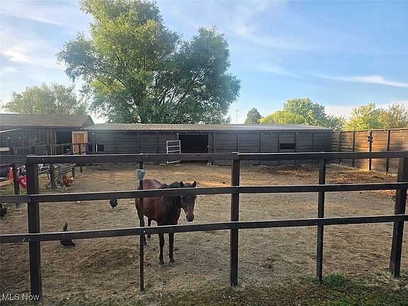 Equestrian and animal lovers, this Gorgeous Well-maintained 3-bedroom and 2-bath Ranch Style Home with an attached 2 car garage with back and front entry doors on 5.25 acres with horse stalls and arena already in place. There are 2 horse barns/stable with a built-in chicken coop and 1 Barn/Outbuilding! The property is so peaceful and beautiful you will have to see it for yourself! Relax on the front covered porch or the concrete back patio! The interior of the home was just freshly painted! Enjoy entertaining in the spacious (25 x 12) open concept Eat-in kitchen which boasts a newer LVT flooring 9/25. The following was renovated in 2021: newer glass slider, light fixture, vinyl flooring, faucet, and countertops. Sellers are leaving the newer SS appliances (Stove and Dishwasher ’25, Ref. ‘22)! The living room offers large bay window that overlooks the covered front porch and expansive front yard. The Upper Bathroom updated in 2021 to include: sink, vanity, toilet & lighting!! The Lower level has a finished bonus room that could be a potential 4th bedroom or office with endless possibilities. The family/recreation room features a wood burner with a blower to enjoy cozy movies or game nights. There's a nice size laundry room which comes complete with washer ’25 and dryer! Newer lower-level bathroom shower in 2nd bath 9/25! Septic system Replaced 2021! Water pumps, Reverse Osmosis whole house water filtration system ’22! Sump pump ’24, Cistern cleaned 7/25, sellers have 2,000 gallons of water delivered when needed, as well as have rain barrels for the garden and lawn. The electrical panel is 200amp! Freshly painted rooms throughout 9/25! There is an easement for a gas pipe on the southeast corner and the Highway on the backside of the property. Enjoy country living at its best! Move-in ready! Close proximity to schools, shopping, medical, highways and much more. One year home warranty!