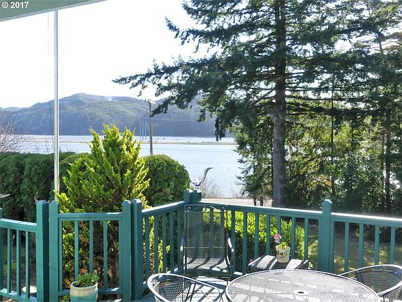 Dramatic Siuslaw River view home, 3 bedroom, 2 bathroom with a park like setting. High ceilings, hardwood flooring and granite counters in the kitchen. Convenient mud/laundry room and optimal storage throughout. New roof in 2016. Detached 46'x26' 2 car garage with a separate driveway and additional room with a full bathroom. This home is not in the city but is serviced by city water.