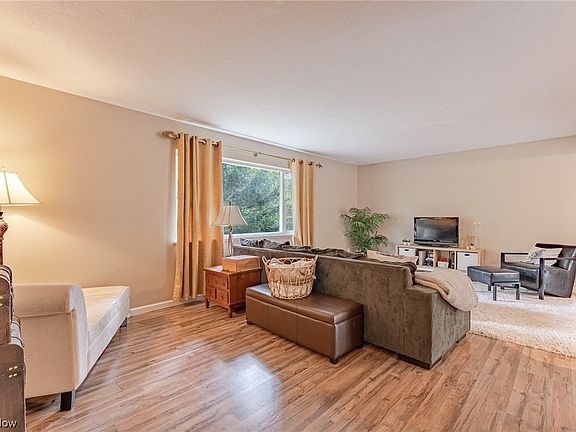 Rare opportunity for a lovely bi-level home on a fantastic 2.45 acre lot in Broadview Heights! This one-of-a-kind property features a lush wooded lot with the home setback from the street and a portion of the Chippewa creek that runs through the yard! Inside the home, there are 4 bedrooms, 2 full bathrooms, spacious living areas, and extensive updates throughout. The front door opens into the stairway with the living room just upstairs. Here you will find a large picture window and updated laminate flooring that flows throughout most of the upper floor. The living room is open to a lovely formal dining with sliding door access to the raised back deck. You will love the updated kitchen that includes a full complement of newer stainless steel appliances, newer countertops, and updated cabinets. Down the hallway are three sizable bedrooms with ample closet space. Two bedrooms features laminate flooring while the largest third bedroom features carpeting and private access to a tastefully u