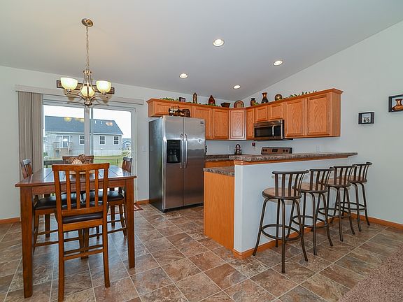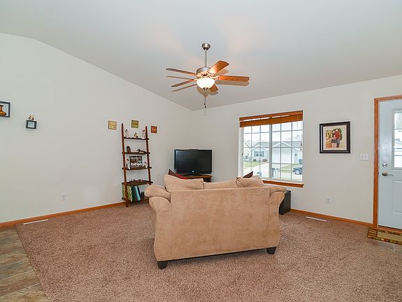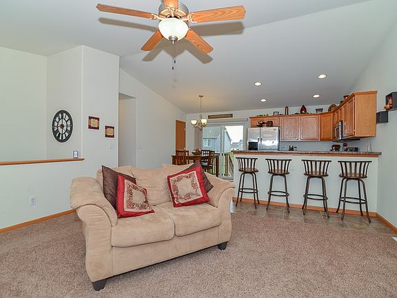 Immaculate home from top to bottom. This move in ready ranch is located in a family-friendly neighborhood, on a quiet street. The main level has carpet and vinyl floors and vaulted ceiling. Also on the main level are 2 bedrooms, 2 full baths, and laundry. The kitchen features vinyl floors, laminate counters, breakfast bar, stainless steel appliances, and pantry. Appliances stay with the home. The master bedroom is located on the main level and features carpet floors and walk-in closet. The attached master bath includes vinyl floors, solid surface counters, and one piece shower. The finished lower level features a bedroom, recreation room with custom dry bar, full bath, and storage area. Outside you'll find a treated wood deck and circular paver patio connected to the custom fire pit area overlooking the yard with chain link fence. Professionally landscaped and maintained since the home was built. Call or email today for a private showing.