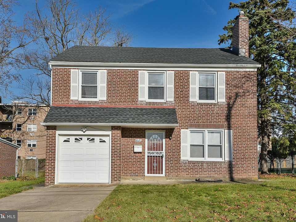 Welcome to 8621 Mansfield Ave. A bright and sunny single family home located in the desirable Cedarbrook neighborhood Philadelphia. Pull up into your driveway with two off street parking spaces and attached 1 car garage with interior access. As you approach the front door, note the well maintained brick façade. Enter into your living room with gleaming freshly refinished hardwood floors. The focal feature of the room is the stone front fireplace, great for cold winter gatherings. Go straight into your dining room with sliding doors to great outdoor space with a covered patio, perfect for all your summer parties. To your left is a pass thru window to make any dinner party festive. A large eat in kitchen with newer oak cabinets, tile floor, Corian counters and recessed lighting. A powder room and first floor laundry finish off the first floor with a door leading you to a screened in porch for bug free entertaining on hot summer nights. Upstairs you will find a primary bedroom with on en-suite bath for your privacy. 2 more bedrooms and a hall bath finish the 2nd floor. On to the basement, great for storage or as a potential family room. A big backyard and shed finish off this property for everyone to enjoy throughout the year. Come see this amazing house today! Home is being sold in as-is condition.