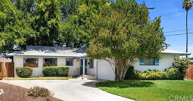 BACK ON MARKET due to no fault of house or seller! This home has been lovingly maintained since day one, in a quiet family neighborhood, with four bedrooms (one of them a master with private bathroom), two bathrooms total, nice-sized living room and formal dining room, as well as an eat-in kitchen with dishwasher and vintage tile counter tops in wonderful condition. The kitchen and dining room were enlarged (with permits) in 1960, so the home feels more spacious than similarly built homes. There is central air/heat, ceiling fans and large closets, hardwood floors under carpeting, the roof is about 15 yrs old, and the water heater is only 3 yrs old. The only thing this tidy house needs is either new carpeting or have the floors refinished. The 2-car attached garage boasts lots of storage, laundry hookups, and an automatic roll-up garage door. Space in driveway to park extra cars and/or small RV. The grounds are landscaped, with the backyard completely enclosed with a block wall, as well as two large mature shade trees (which help with maintaining a cooler home in the warm months). Sold AS IS. Low taxes, no HOA, and a block from an elementary school. Walking distance to market and other conveniences, and the Galleria at Tyler (with restaurants and movie theatre) is less than 3 miles away. Cal Baptist University is only half a mile. Welcome home to this sweet vintage 1500 sq ft cottage with cute front porch, that is waiting for a new family to start their own memories!! Sold AS IS. Conventional loans preferred, but might consider FHA.