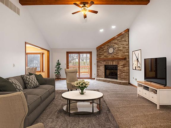 Be sure to see this delightful home in a perfect location before it's sold. If you are looking for a nice great room with corner fireplace, 3 bedroom, 2 full bath, separate laundry room, eat-in kitchen and nice fenced yard with views of a wooded nature area behind, this is the home for you. Interior has been professionally painted, new carpet in great room, hall and bedrooms, new bathroom vanity and toilets, new vinyl plank flooring in bathrooms and laundry room, nice ceramic tile in foyer, kitchen and dining area. New roof 2019 and new hot water heater 2021. Welcome spring on the sprawling deck with lovely landscaping all around. Just move in and enjoy. Ideally located off Wallen Road on a quiet street with easy access to the new Pufferbelly Trail and lots of lighted sidewalks throughout the subdivision.