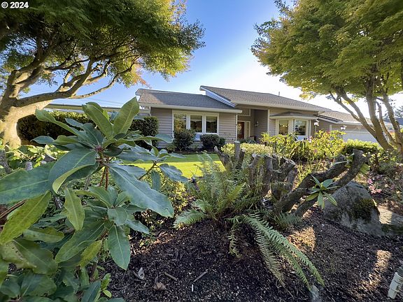 Welcome to your serene retreat with immaculate views of the Siuslaw River! This stunning 2,822 sqft home offers 2 bedrooms and 2 bathrooms, perfectly designed for modern living. Enjoy a spacious den with built-ins, ideal for work or leisure, and an upper-level office that overlooks the inviting living room. With vaulted ceilings and skylights throughout, this home is bathed in natural light, creating an airy, open atmosphere. The kitchen is a chef’s dream, featuring instant hot water, a double sink, and ample counter space for all your culinary creations. Step outside to relax on the covered patio or the back deck, where you can take in the incredible views and listen to the soothing sounds of your backyard water fountain. A convenient toolshed provides extra storage for your gardening needs. Don't miss the chance to own this extraordinary property with breathtaking river views!