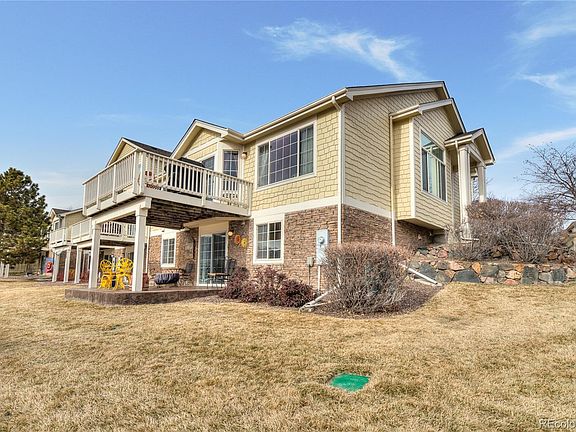 Fantastic, end-unit townhome featuring two large master suites, one on the main level and one upstairs. Enjoy the remodeled kitchen complete with granite counters, updated cabinets, breakfast bar and quality SS appliances. The kitchen flows into the vaulted great room and dining area creating the perfect, comfortable living space. Large deck off the kitchen with incredible views to the south and the golf course. The main floor study in the front of the house could also be used as a bedroom. The upper level is also home to a loft. Full, finished walk out basement with granite wet bar and tons of entertainment space. Ample storage and a bonus room that could be used as an exercise room, craft room, office, use your imagination. Stamped concrete patio outside the lower level looks out over the 14th tee at Deer Creek Golf Course and wetlands. Oversize 2-car side-load garage with a tool bench offers extra space for your toys and parking. True lock and leave convenience.Secure, gated golf community with a park, lake and new playground. Within easy walking distance to popular restaurants. Easy commute, minutes to C-470 at the base of the foothills.