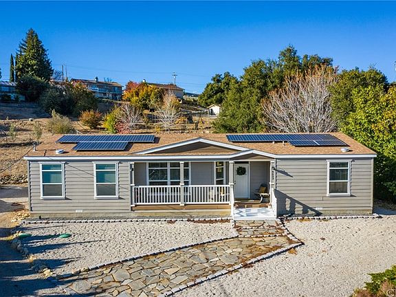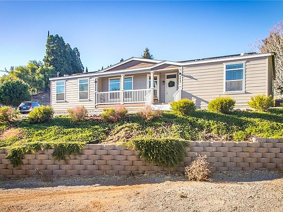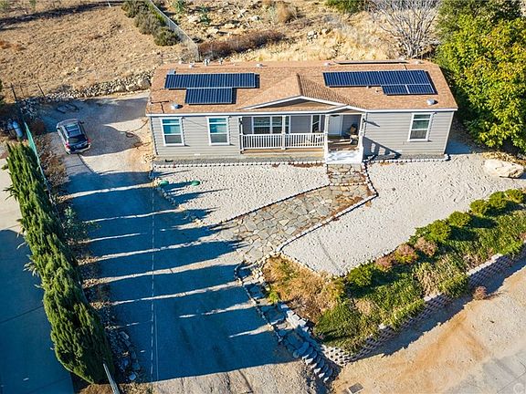 Imagine yourself living in beautiful Cherry Valley surrounded by amazing mountain views and fresh air! Enjoy your morning coffee on the large porch while you take in the serene valley views. This fabulous 3 bedroom 2.5 bath home features the highly desirable open concept living between the spacious living room, dining room and kitchen. The sophisticated living room boasts coffered ceilings, a cozy fireplace with a custom large beam mantel and shiplap surround. Flow right into the well-appointed kitchen with gorgeous granite counters and eat-in island, upgraded stainless steel appliances, built-in microwave, subway backsplash, stainless steel farmhouse sink and lots of open shelving, perfect for cooking at home! The lower cabinets feature soft close doors and roll out shelves for easy access. The laundry room with sink and cabinetry is just off the kitchen and comes with the nearly new washer and dryer. The spacious owner's suite is situated away from the other bedrooms and has a large walk-in closet and spa like ensuite with double sinks, separate shower and large soaking tub. Upgrades abound throughout with high-end fixtures, wood look laminate flooring, blinds, crown molding and upgraded trim, 9' ceilings, upgraded insulation, including 6" exterior wall construction and fire sprinklers. Save on your electric bill with solar on PPA. This home is ready for its new owner, step inside and be WOWED by all the designer touches, definitely not your grandma's manufactured home!!