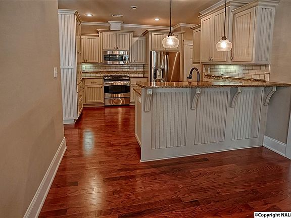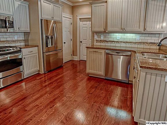 * Priced to sell! *Easy low maintenance living * No Stairs * Open floor plan great for entertaining * 2"blinds * Stacked stone fireplace in Great room * Soaring ceilings throughout * Gleaming wood floors * Extensive crown molding *Security System * GE stainless steel appliances * Granite counter tops in kitchen & baths * Large isolated master suite with access to side patio * Glamour bath has walk-in shower & Jetted tub * Covered side veranda with wood burning fireplace *Grape arbor * Fig, peach, & plum trees * Neighborhood pool! * Close to Redstone Arsenal, I-565, & Research Park*