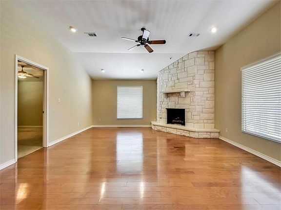 Great one story with view of Lake Travis on approx. 1/2 acre lot - Spacious kitchen flanked by living/dining room and family room. Each bedroom has it's own bath and walk-in closets. The private spacious master is appointed with a fireplace. The large garage has it's own independent workroom with storage. Enjoy the long cover patio while viewing the lake, sunsets and hill country. Great amenities, access to docks, camping, parks and more! With the LV Airport so close...walk to your plane!s!