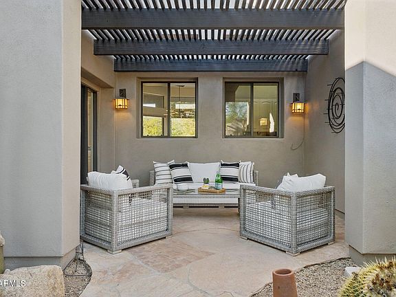 Experience this beautiful North Scottsdale desert retreat set on a quiet cul-de-sac acre lot. Enjoy the upper balcony with your morning coffee, take in the sunset skies or relax on the large wrap around covered patio with a commercial grade misting system. The heated pool enhances the resort style atmosphere. Inside, the home offers high ceilings, lots of natural light, a welcoming family room with fireplace. The wet bar & gourmet kitchen w granite counters & stainless steel appliances are ideal for entertaining. Dedicated office, LUTRON lighting system, SMART HOME TECHNOLOGY that includes smart locks and water leak detection. Observation roof deck, New roof 2024, This home blends privacy, scenery & comfort in a prime location just minutes from world class golf, shops, hiking, restaurants