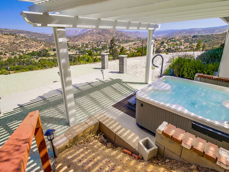 Spectacular gated 1 BR 1 BA 900 SF detached cottage at the top of the hill in Alpine w/ sweeping mountain & canyon views. Amenities close, & just 25 minutes to downtown SD. The home looks like Chip and Joanna Gaines just left their brand on this home! Brand new remodel with laminate floors, quartz counters, top of the line stainless steel appliances, sleek white shaker cabinets with soft close drawers. Massive amounts of storage in the kitchen pantry. 9' ceilings make this home seem even more spacious than it already is! Sliding barn door closet in the master BR, walk in closet, double sinks in the BA with a sit-down vanity. Oversized walk-in shower. Mirrored utility closet w/ laundry. Heat and AC in each room. Outside, you will find a new spa ready to sooth away the day and relax with a glass of wine as you watch the sun set in the west. Covered patio and gas fire pit are all included on the property. Climb the "Highway to Heaven" stairs and gaze out over the valley as you practice your yoga or just have a Zen moment.