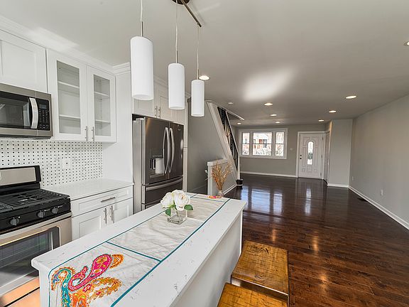 Welcome to 8624 Rugby St. a stunningly remodeled, charming brick home set on a quiet residential street in desirable East Mt Airy. This home is a stones throw away from Chestnut Hill and is conveniently located near an up and coming shopping center. The first floor is a sun-filled, open concept space with brand new ~ inch thick Maple hardwood floors, large new windows, and recessed energy-efficient LED lighting. The open first floor provides ample room for living and dining spaces and features a custom kitchen you wont find elsewhere. The kitchen has brand new Whirlpool stainless steel appliances including a 4-door French door refrigerator, dishwasher, gas stove, and built-in microwave. The deep, stainless sink has a unique industrial style pull-down faucet and is flanked by quartz countertops and tiled backsplash. This kitchen features chic all-white cabinetry including a large pantry and lazy Susan and offers plenty of storage space. Finally, a beautiful quartz island anchors the well-equipped kitchen, highlighted by pendant lights. The new wood floors continue up to the second floor which offers three bedrooms, all with closet space and new, sunny windows. The home's first full bathroom is found on the second floor and features a quartz top grey vanity with underneath storage, shower/tub combination with modern wood-look tiles fully surrounding the shower niche along with a white wood-look tiled floor. A hall linen closet gives you all the storage you need for your bath products and bedding. For those looking for even more space, the basement is finished with grey wood-look tiles throughout. The area is very bright thanks to new windows along with a generous amount of recessed LED lighting. The home's second full bathroom is found in this space as well and features a full shower/tub combination with tiles fully surrounding the shower niche. The basement has a fully tiled laundry room with walkout access to the garage along with the parking area in the rear of the house. What's more, this home has all new systems, including central heating and cooling along with brand new duct work throughout the home.