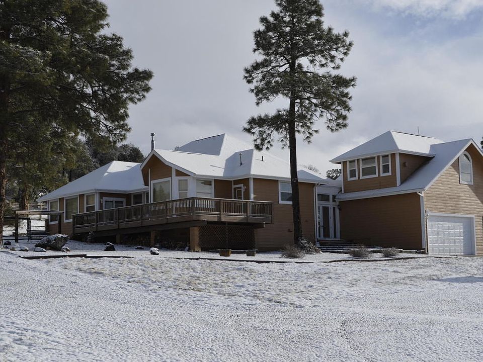 Gorgeous horse property not to be missed! Main home has 3 bedrooms, 2.5 bath, open concept floor plan with views in all directions of the National Forest, Mt. Elden and San Francisco Peaks. Freshly painted both inside and out! Kitchen boasts a gorgeous custom made Juniper bar along with custom stools that are included with this home. Large laundry room with an attached half bathroom accesses the west facing deck. The master bedroom offers a large walk-in closet, jacuzzi tub and has private access to the backyard and west deck. Also, in-law quarters are located above garage & there is a darling 1bed/1ba guest house. This property is a horse lovers dream. The 1920 sqft 5 stall Barnmaster barn with water heater, tack room and adjacent riding area will provide a cozy home for your horses.