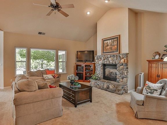Well maintained single story is serenely private & rests atop 10 acres with local & peek a boo Sierra views. Timeless design offers an open floor plan with formal & informal gathering spaces. The island kitchen boasts gas cook top, double ovens, large pantry & a nook. Family room w/gas fireplace has river rock hearth. 5 year new HVAC, fresh paint & newly paved driveway.Picture windows capture the views & lushly landscaped grounds. 3-car attached & 2-car detached garage plus room for RV & a boat.