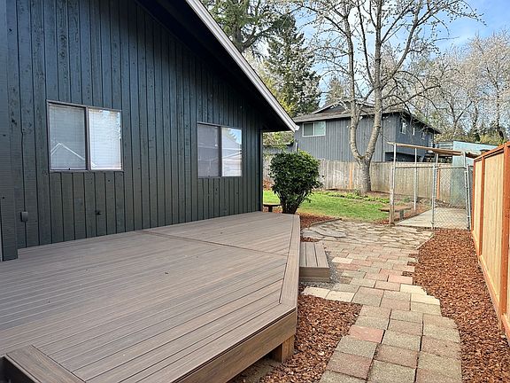 Welcome to this charming 3 bedroom, 2 bathroom home in a lovely established Tigard neighborhood. This single level house boasts a large, fenced yard, perfect for outdoor entertaining or relaxing in privacy. Cozy up by the gas fireplace in the living or enjoy the fresh air on the new deck off the family room. The open kitchen plan to the family room is perfect for cooking and socializing, while the laundry room with washer and dryer adds convenience. The primary suite features 2 closets and a private patio, offering a peaceful retreat. With lots of storage space, new paint inside and out, and wood floors throughout, this home is move-in ready. Park your vehicles in the 2-car garage and make use of the additional covered storage in the back yard. Don't miss out on this wonderful opportunity to make this house your home!