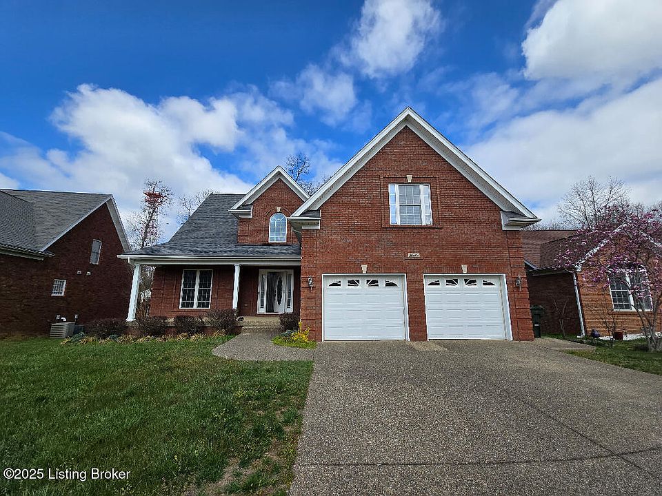 Discover this stunning 1.5-story all-brick home with finished walkout basement. Featuring 5 bedrooms, 3.5 baths, and an open floor plan with abundant natural light from extra windows throughout. The two-story great room boasts a marble gas fireplace and picturesque backyard views. The kitchen features stainless steel appliances and a trayed dining room. The main-floor owner's suite offers a tray ceiling, whirlpool tub, and walk-in closet. Upstairs includes three spacious bedrooms and attic storage. The finished basement shines with cherry wood floors, another marble fireplace, a custom bar, an in-law suite, and a vibrant bath. Enjoy a large deck, covered patio, mature trees, and a 2.5-car garage. Tech-ready with smart wiring, surround sound, and a security system. Community pool included!