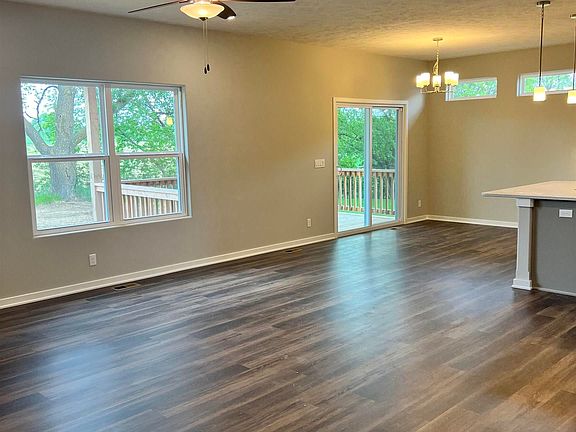 BEAUTIFUL VIEWS FROM TREE LINED BACKYARD. True 4 bedroom, 3 bath, 3 car home. 3rd car has 8ft garage extension. Covered deck off kitchen/dining area. Gas Appliance package. Quartz counter tops, tile backsplash, under cabinet lighting, soft close in kitchen. Rounded corners upper and LL. Electric car charging station rough in, wall mount TV prewire in great room. Electric fireplace with tile surround. LVP flooring in high traffic areas. 16x10 deck, James Hardie siding, sprinkler system, two trees. Active radon mitigation system. CLOSE IN 30 DAYS!!