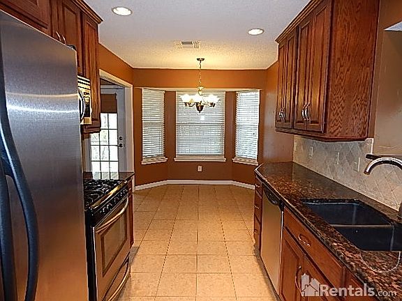 1,324 Sq. ft. 3 bedroom 2 bath. Kitchen has tumbled marble backsplash with granite countertops. Stainless steel appliances including refrigerator. Ceramic tile floors in kitchen. Gas fireplace in living area. Laminate wood floors in living area, entry and hall. Fresh paint in bedrooms and master bath. Ceiling fans in all bedrooms. Covered patio and back-yard backs up to green belt. Pets are case by case basis. $1325 Security Deposit. Call Jeff Burch at 918-809-6586.